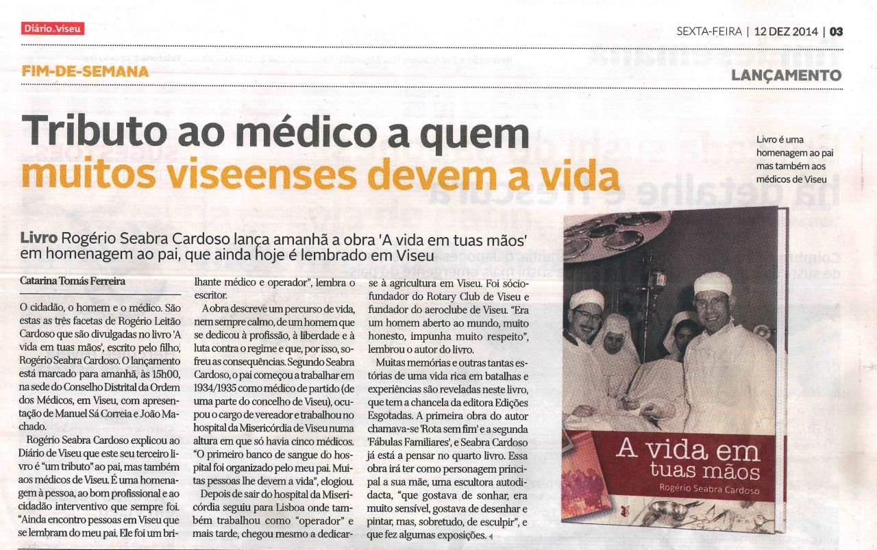 Tributo ao médico a quem muitos viseenses devem a vida por Edições Esgotadas /2 de Outubro, 2015Notícia publicada no jornal Diário de Viseu, de 12 de dezembro de 2014. Partilhar link: